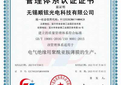 無(wú)錫順鉉光電質(zhì)量管理體系認(rèn)證證書(Q)